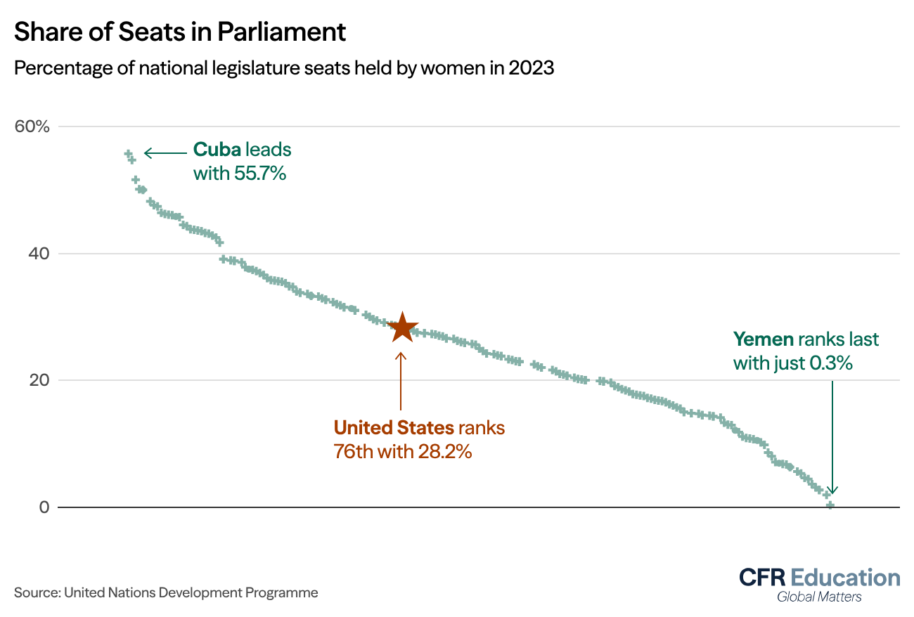 Dig deeper into this issue by exploring the Women’s Power Index, which ranks 193 UN member states on their progress toward gender parity in political participation.